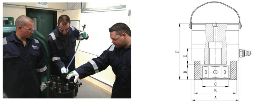 • 彈簧自動(dòng)復(fù)位,活塞過行程保護(hù),當(dāng)活塞達(dá)到最大行程時(shí),將可見一根紅色警示線,拉伸器內(nèi)部的一個(gè)簡(jiǎn)單的機(jī)械失效裝置將避免液壓油濺傷作業(yè)人員;