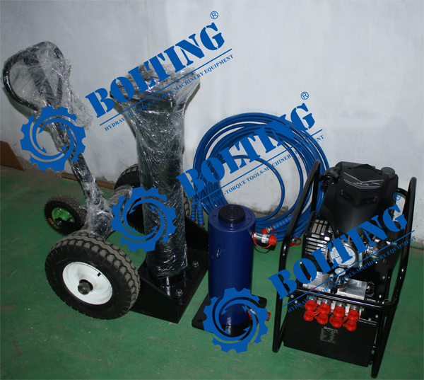 近日為河南某重工企業(yè)定制的移動(dòng)式液壓駕車(chē)機(jī)準(zhǔn)備發(fā)貨,因客戶(hù)現(xiàn)場(chǎng)工況受限,采用汽油發(fā)動(dòng)機(jī)動(dòng)力液壓泵作為動(dòng)力源,配備移動(dòng)駕車(chē)機(jī),50T通用型雙作用液壓千斤頂和10m的雙聯(lián)液壓油管,簡(jiǎn)便快捷的解決了重物頂升問(wèn)題。