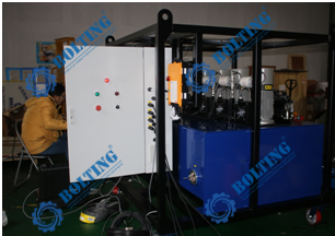 (1) 液壓動力單元配置四臺 HAWE 高 效RZ系列電動泵供油,正常情況下一臺電動泵為1臺液壓油缸供油; (2) 同時可以通過外部管路連接后,替代原有4臺泵中的一臺為其連接的液壓油缸供油; (3) 高頻電磁換向閥用于頂升/縮回控制; (4) 一個 800L 可用液壓油容量的油箱為系統(tǒng)的應(yīng)用和循環(huán)冷卻提供充足的油量; (5) 配置液壓油冷卻器可以及時冷卻液壓油,防止工作過程中液壓油溫度上升過快; |